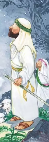 Isaac's head began to nod. His hand slowed down scratching the dog's head. It was hard for a boy of ten to stay awake all night in the field. The dog licked his face. "What? Oh, good boy," Isaac said. He rubbed his eyes and stretched. The sky was clear and full of stars. Isaac was glad his father thought he was old enough to help with their flocks of sheep.